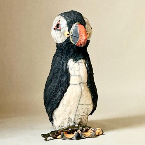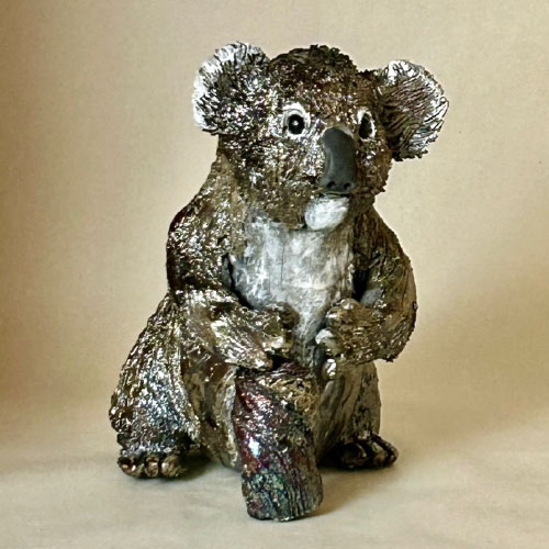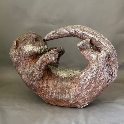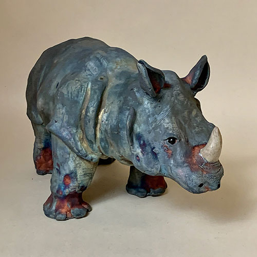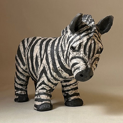 I start my sculpted animals with a block of clay and an idea of size and proportion. No molds are used. The animals are then air dried, bisque fired, glazed (for raku firing), and then raku or soda/wood fired. With the vast number of variables no animals are ever the same.
