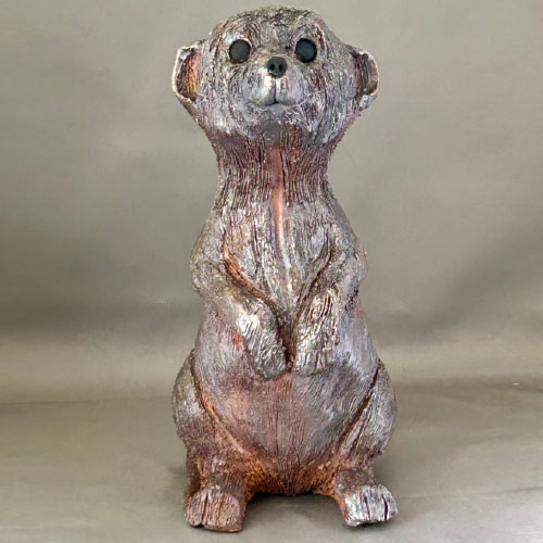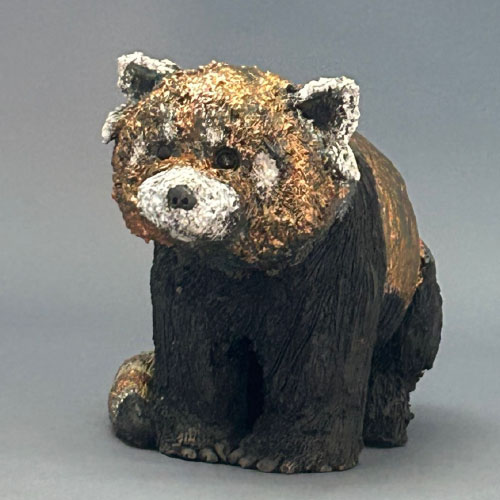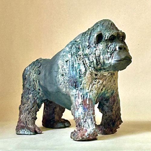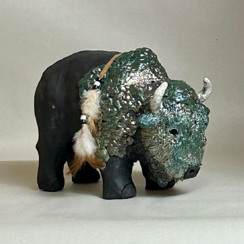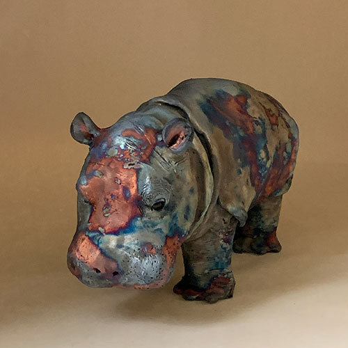 I start my sculpted animals with a block of clay and an idea of size and proportion. No molds are used. The animals are then air dried, bisque fired, glazed (for raku firing), and then raku or soda/wood fired. With the vast number of variables no animals are ever the same.