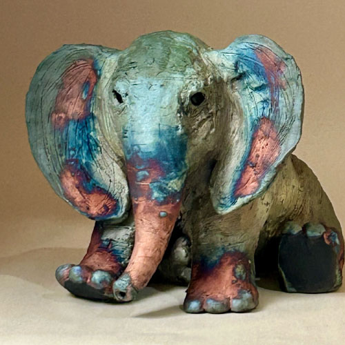 I started sculpting small animals. I began with a small closed form, added legs and head and let the form and my imagination go. The first attempt led to an elephant. Then approaching clay the same way I have created other animals. I began to see that most vertebrates have the same basic sculptural features, i.e. eyebrows, shoulders, hips, etc. You could say that all my animals still start elephants!